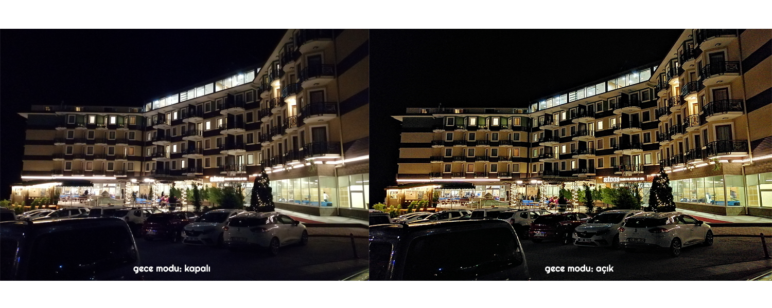 Öte tarafta arka kameranın diğer kusurunun gece çekimi olduğu görüşündeyim. Düşük ışıkta görüntüyü düzgün işleyemeyen kameralar, oldukça fazla (noise) gürültü oluşturuyor. Ancak, çekimlerinizi Gece Modu ile gerçekleştirirseniz, muazzam bir sonuç elde ediyorsunuz.