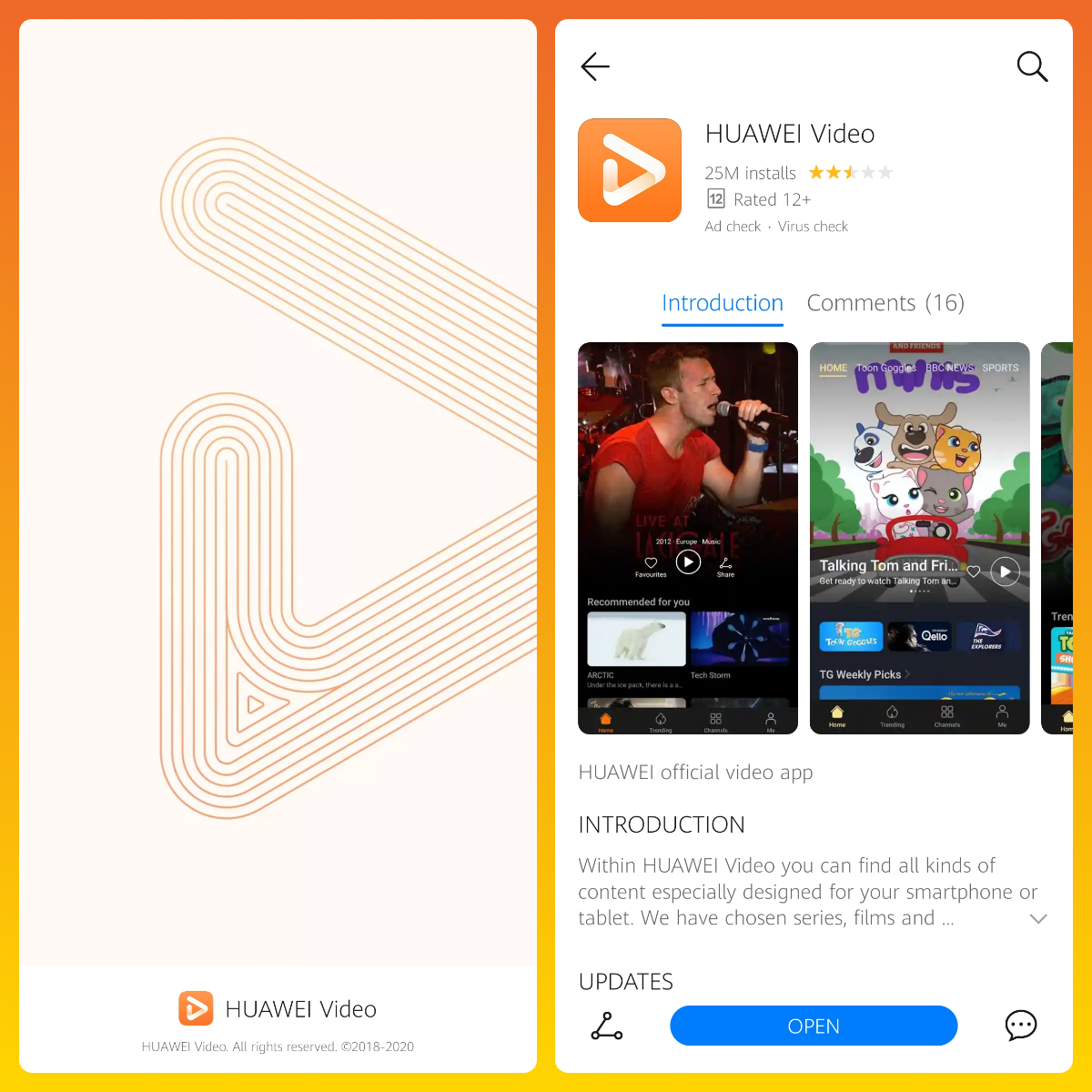 HUAWEI Video is default video player in HUAWEI /HONOR smartphones and Tablet devices.Within HUAWEI Video you will find series, films and documentaries, and also added our very innovative offer of videos about hot topics, shocking stories, lifestyle, fun and videos about sports and much more!