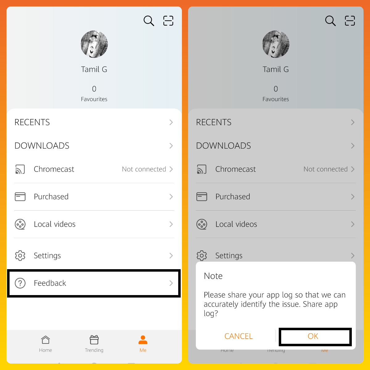 + Open HUAWEI Video App > Me > Feedback