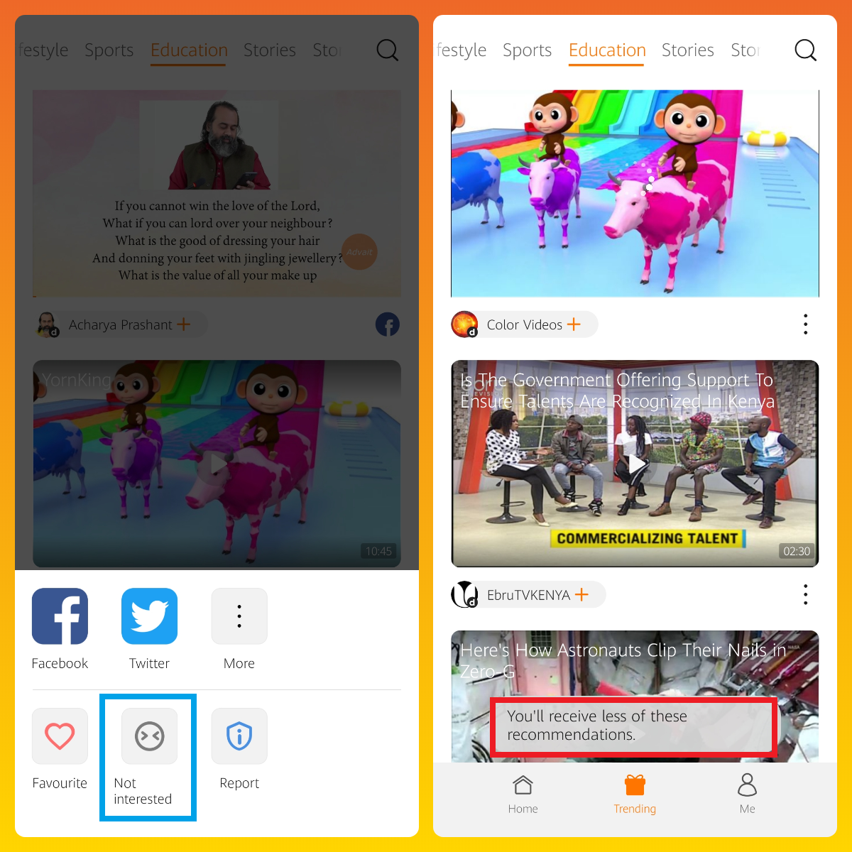 + Simply Tap on the (3 dots) and tap on "Not interested"