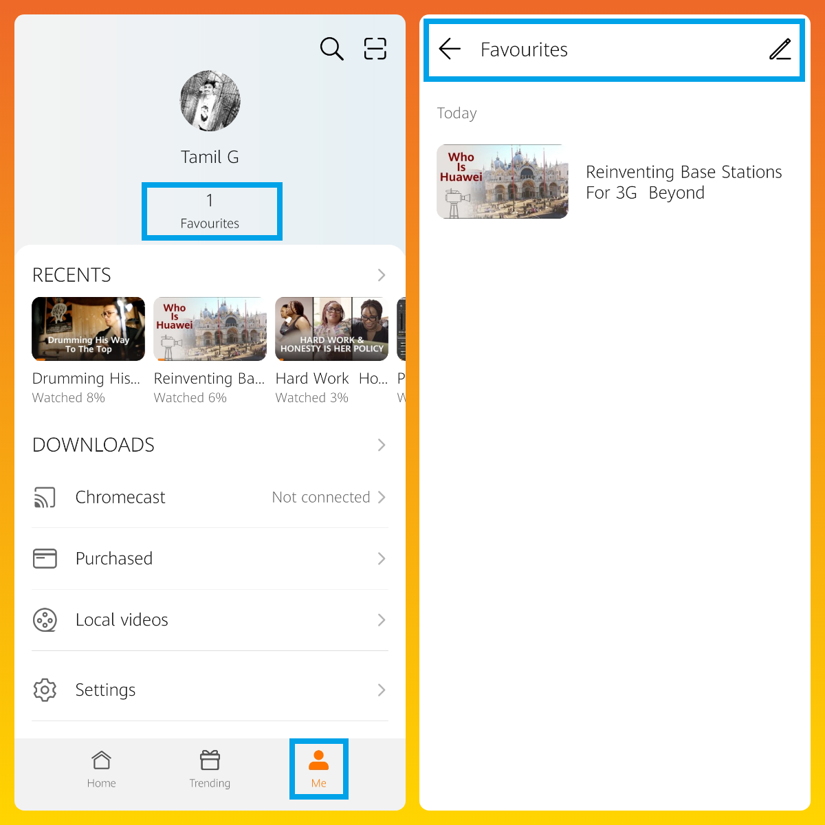 + You can alternatively access all your favorite in "Me"