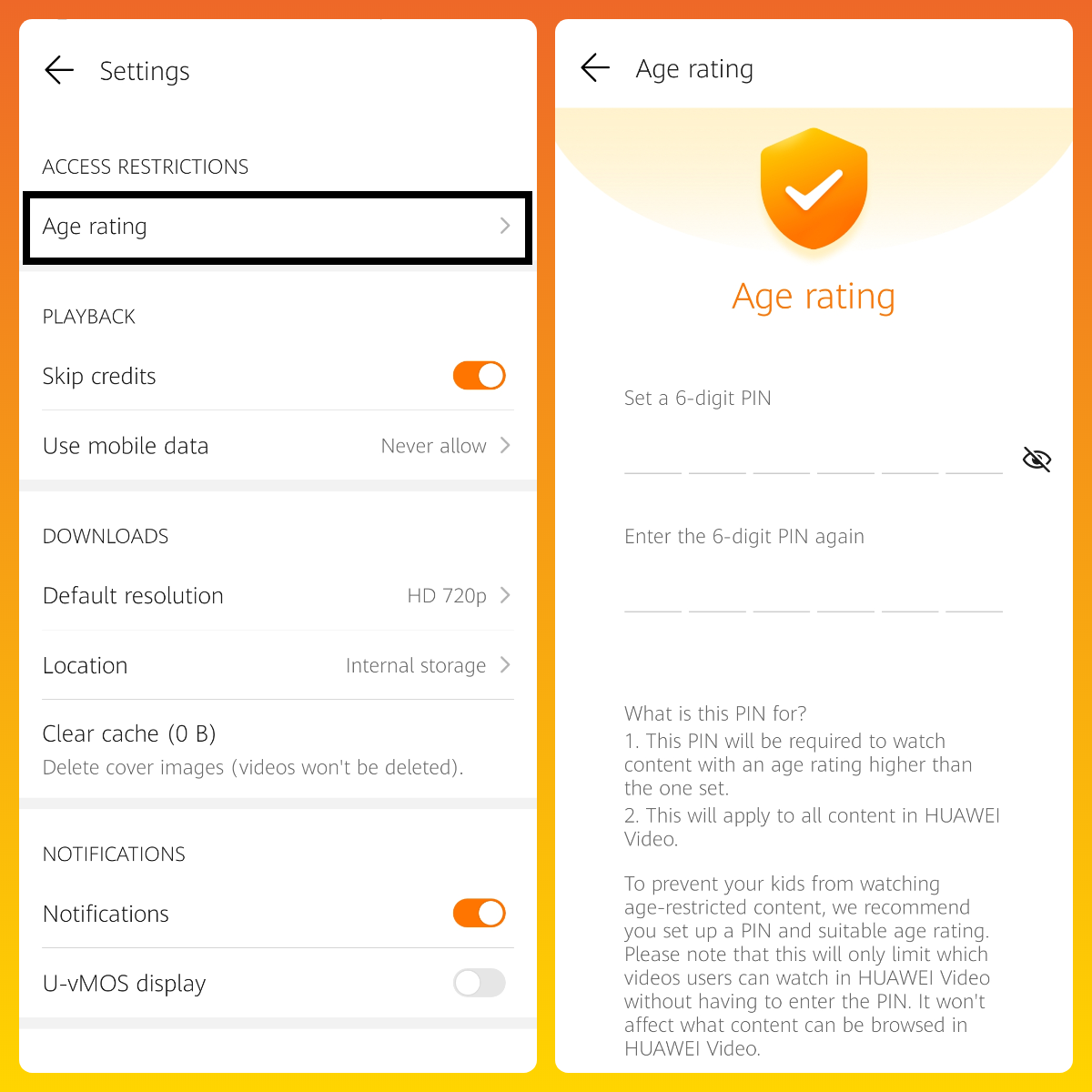 + Set a 6 digit PIN to watch content with an age-restricted content