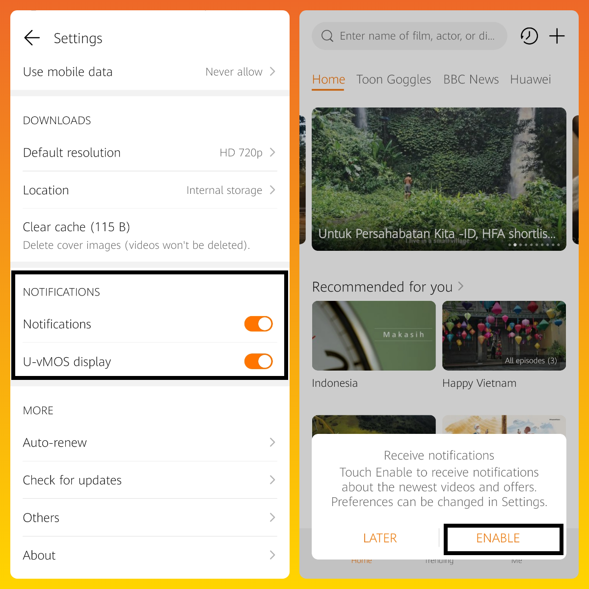 Settings - HUAWEI Video