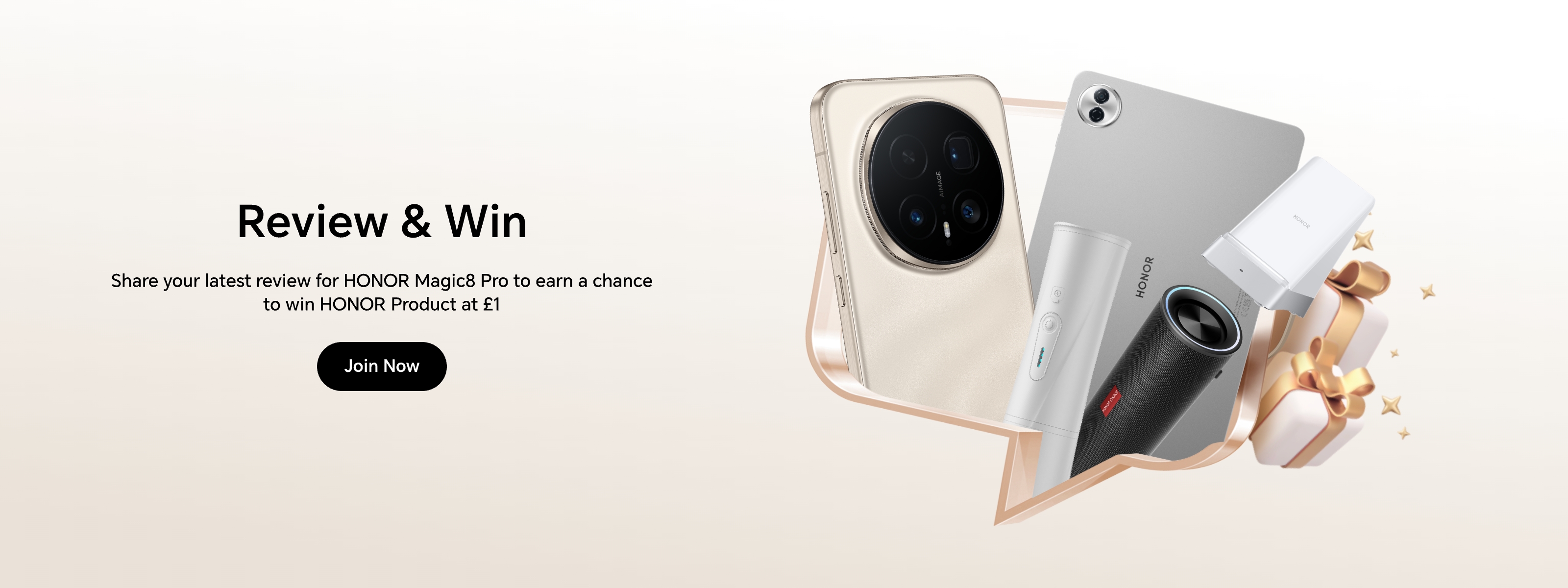 HONOR Pad X9a (First come, Fist served) & HONOR SuperCharge Power Adapter GaN (Max 100W) & HONOR CHOICE HONOR Magic8 Pro Case (Gifts worth £289.9), First come first serve, Only on HONOR UK.