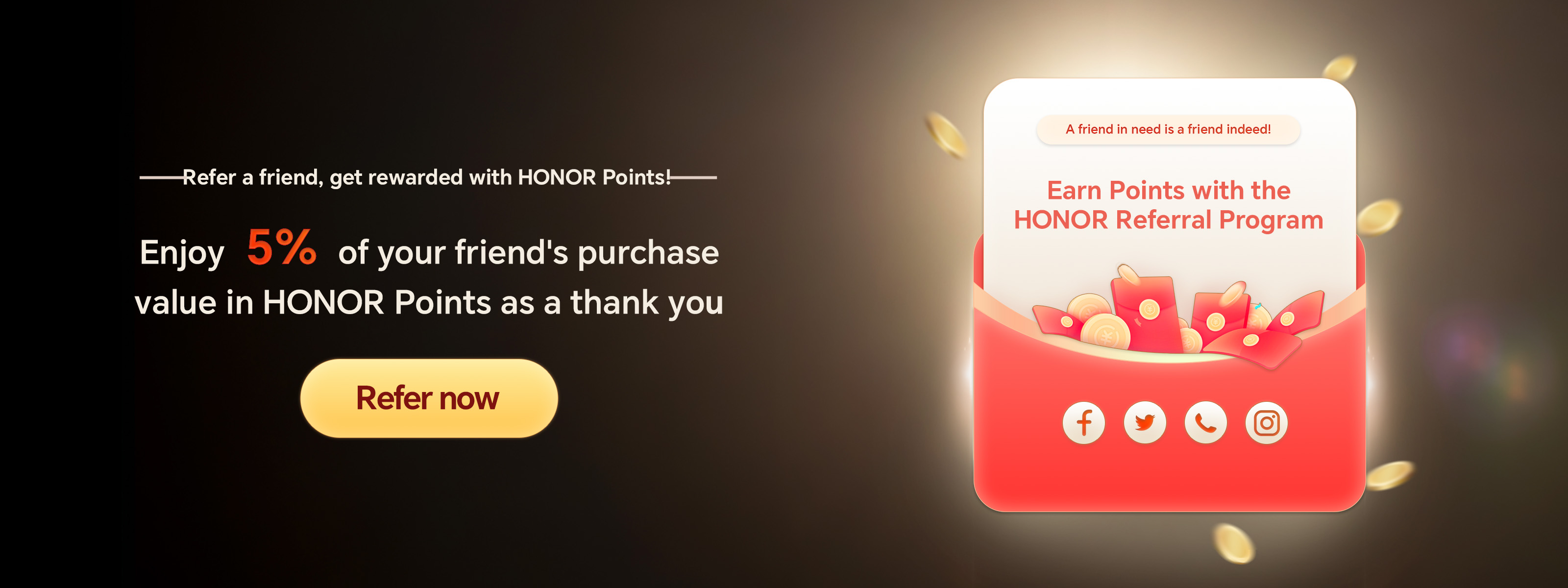 Earn rewards for each new referral with 5% of your friend's purchase value in HONOR points.