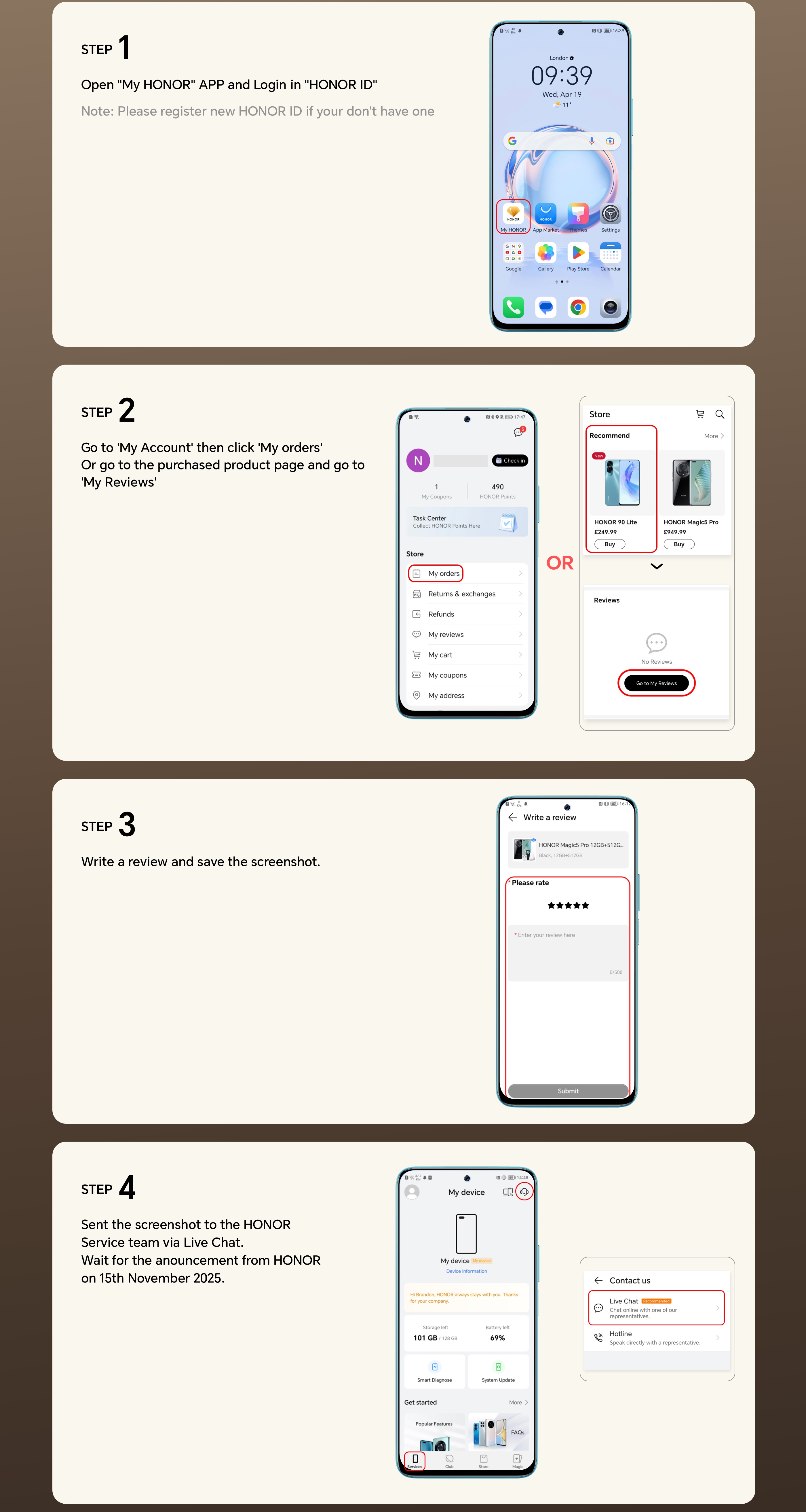 By entering your WhatsApp number, you agree to receive commercial information on WhatsApp about HONOR products, events, promotions and services. For more details, please see our privacy policy.