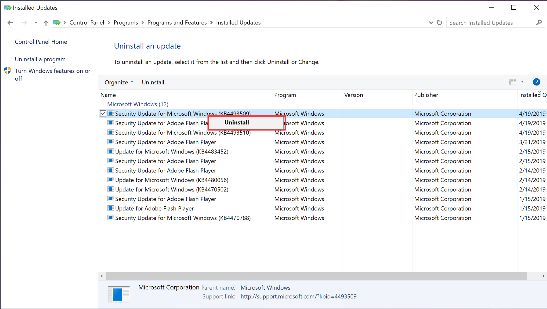 - Right-click the update you want to uninstall and click Uninstall.