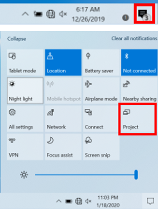 Click the Windows icon and the Shut down icon, then click Restart.Project the computer's screen again and check if this resolves the issue.