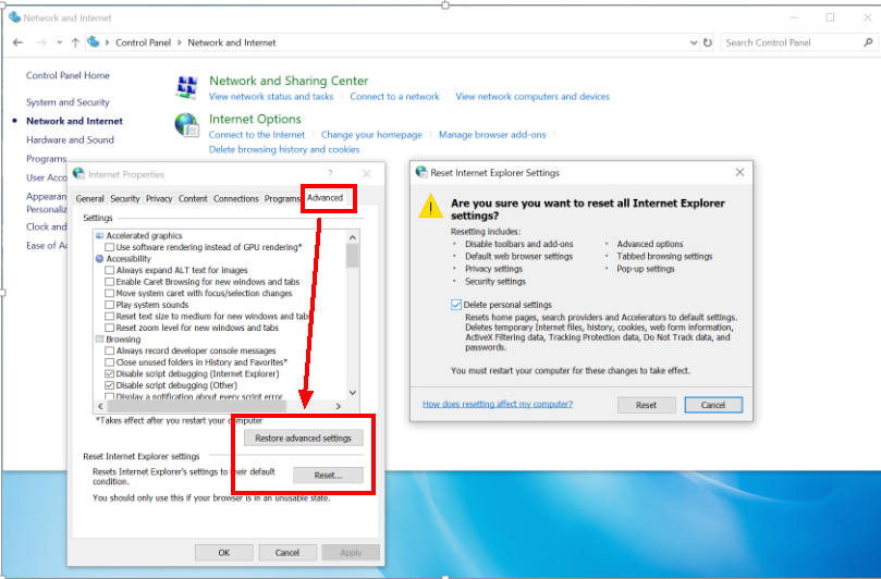 Alternatively, you can reset the network by using the netsh winsock reset command.