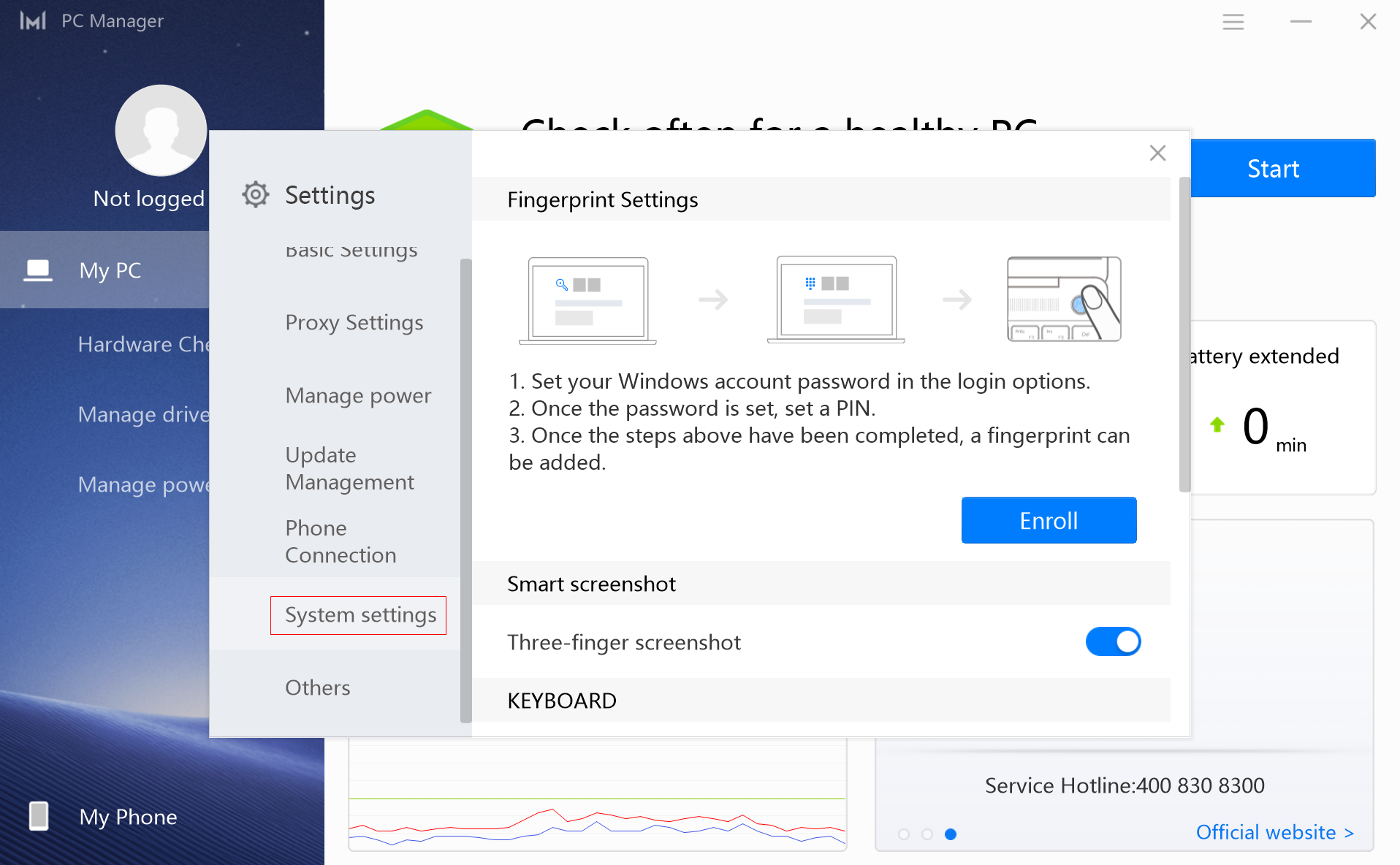 1. Open PC Manager, and click the settings icon in the top-right corner.