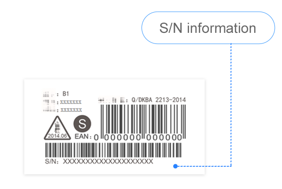 Vérifiez l’emballage du produit. S/N correspond au numéro de série.