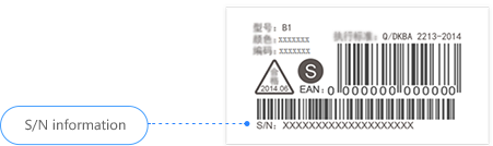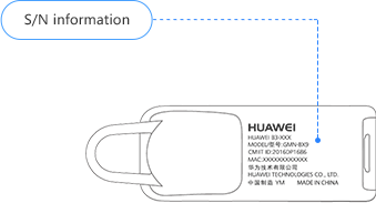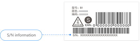 2. Vérifiez l’arrière du casque Bluetooth. S/N correspond au numéro de série (applicable au B2).