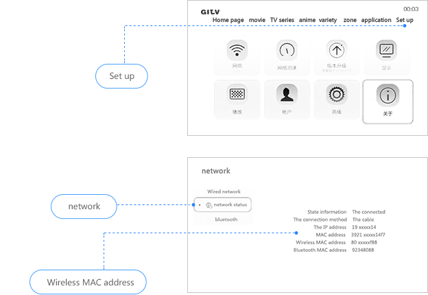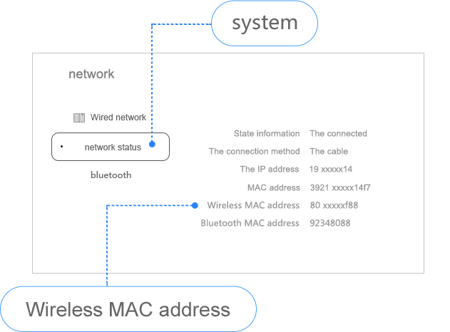 ● Vérifiez le code MAC : Paramètres -> À propos -> Réseau