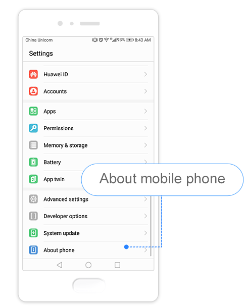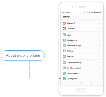 Lorsque le périphérique est allumé, accédez à Paramètres -> À propos du téléphone -> État actuel.