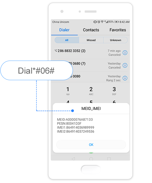 Lorsque le périphérique est allumé, composez *#06#.(uniquement applicable aux tablettes en version appel)