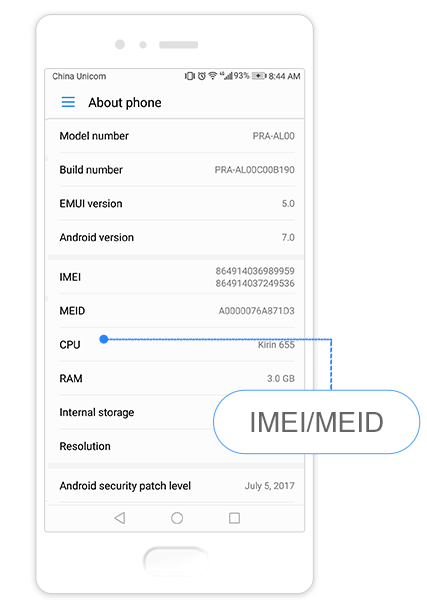 Vérifiez les codes IMEI et SN sur l’emballage du produit.