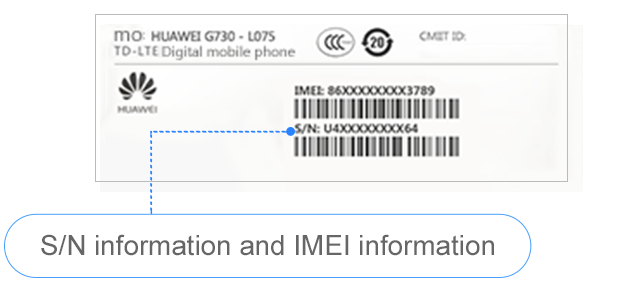 Vérifiez le code IMEI et le numéro de série sur l’étiquette de la façade arrière de l’appareil.