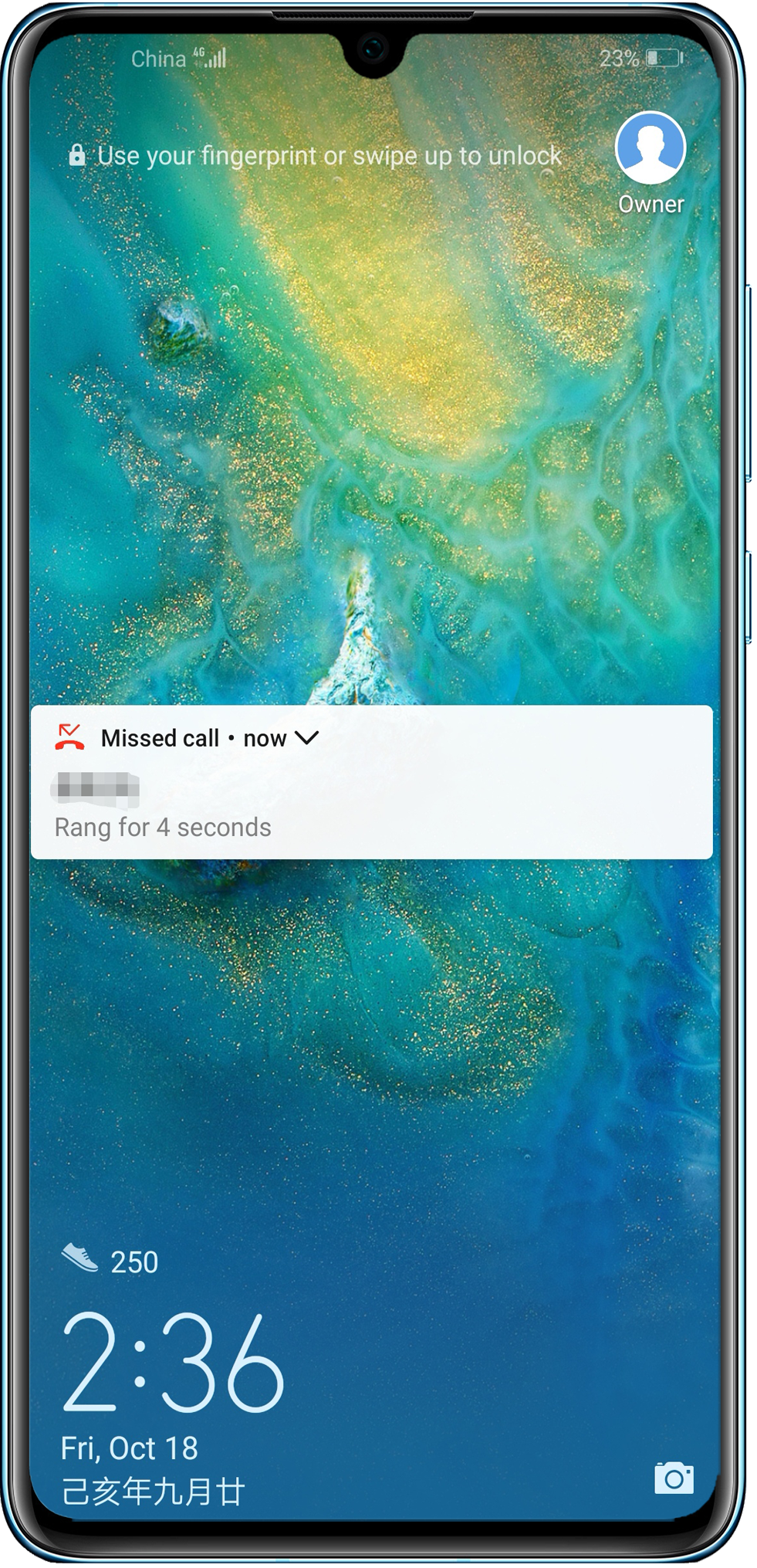 На следующих изображениях показан случай, когда на экране блокировки есть уведомление о пропущенном вызове, и случай, когда его нет.